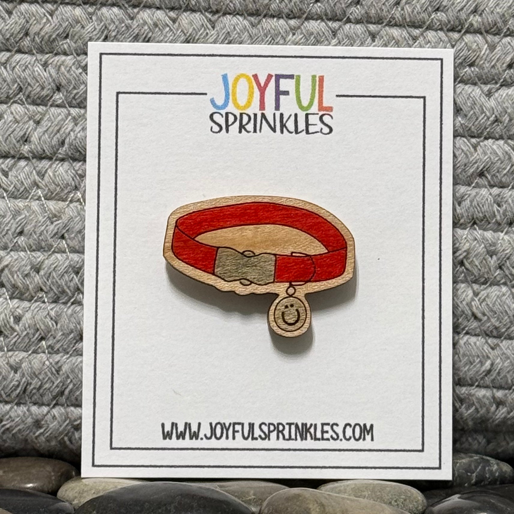 Celebrate your love for furry friends with this charming dog collar magnet from Joyful Sprinkles! Crafted from wood and painted in cheerful red and beige tones, this magnet features a classic collar design with a smiley face tag that adds a touch of whimsy to any space.