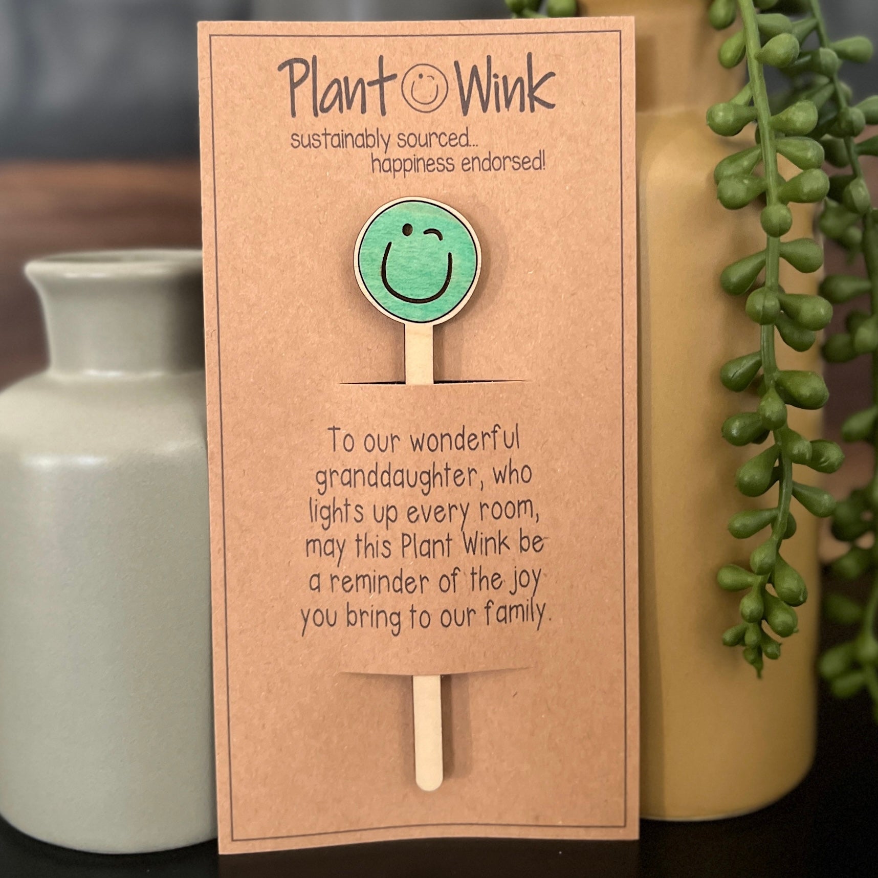 Plant Winks are lovingly crafted, showcasing unique details and a warm, natural finish. No two Plant Winks are alike.