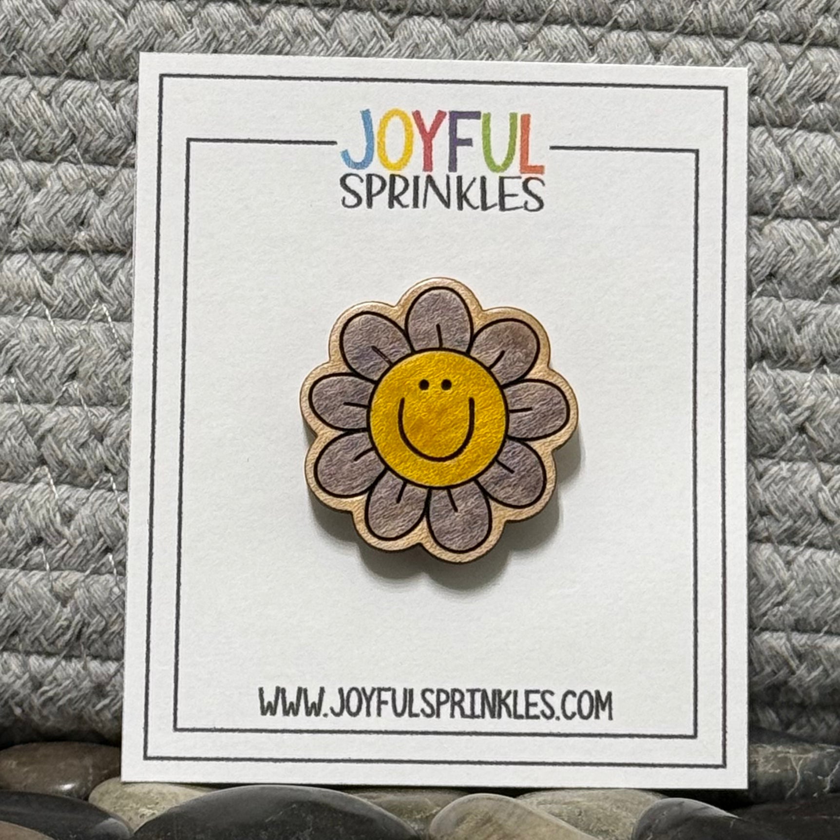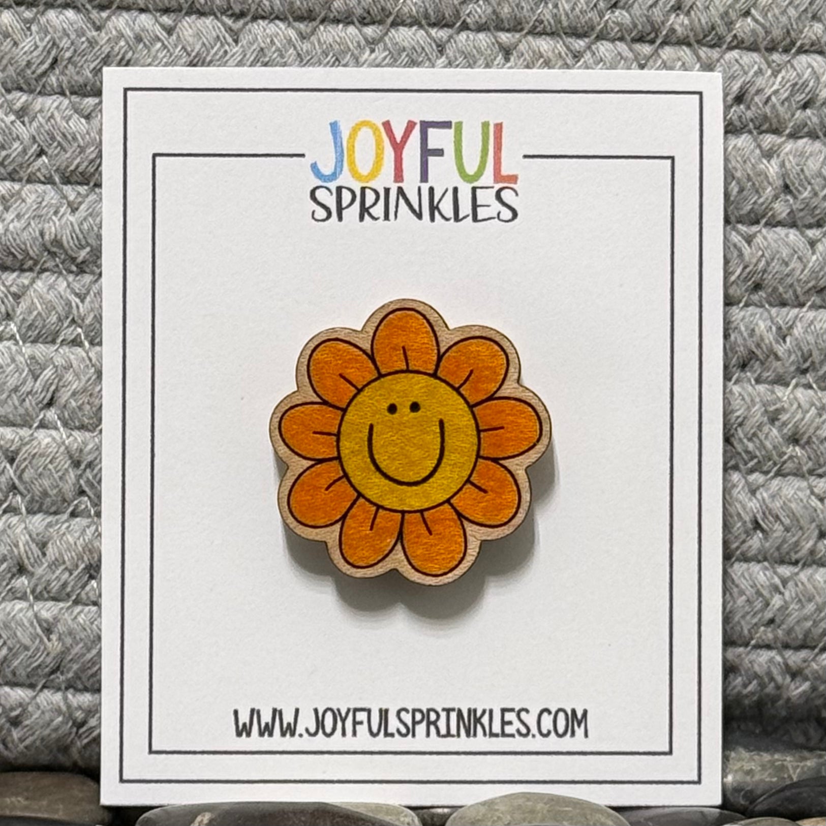 Add a burst of sunshine and retro charm to your day with this absolutely adorable smiling flower magnet! This cute wood magnet features a cheerful flower with a happy smiley face, radiating positivity and good vibes. It's the perfect way to bring a touch of groovy, boho flair to your refrigerator, locker, magnetic board, or any metal surface.